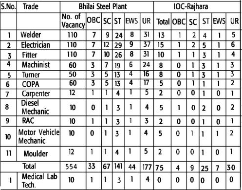 Steel Authority of India Limited has released a notification for the recruitment of Apprentice for Bhilai Steel Plant & IOC Rajhara.